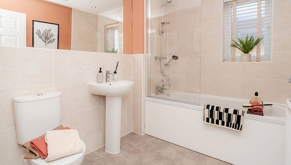 Your bathroom will come complete with a white Ideal Standard bathroom suite, with pillar taps to the bath and washbasin. Choose between a range of Porcelanosa tiles to finish your bathroom perfectly.