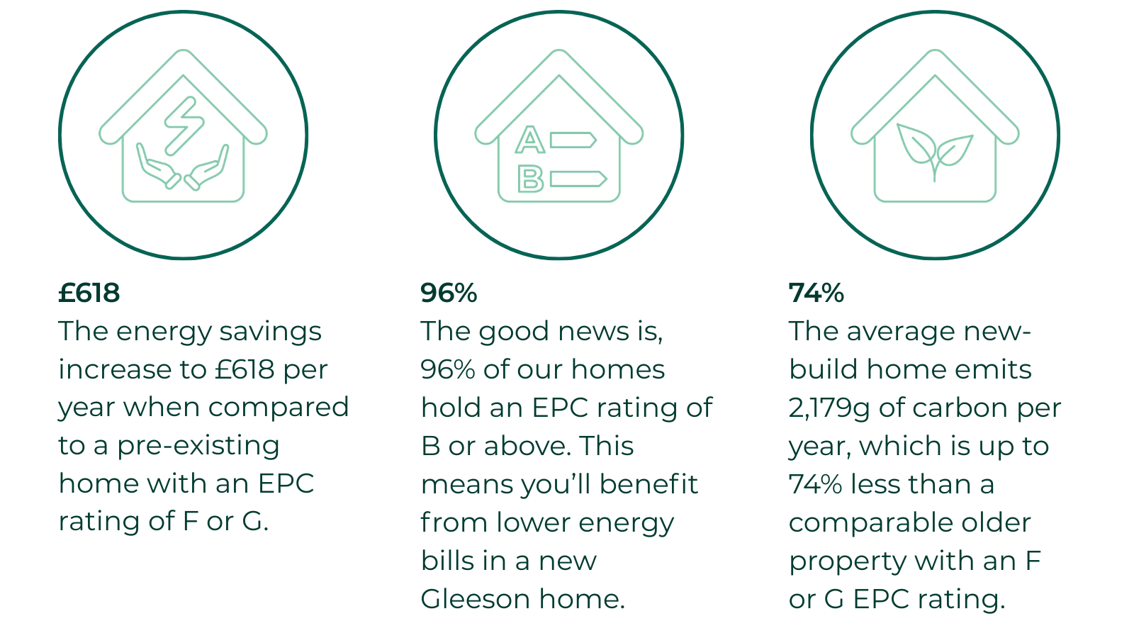 New build homes are designed to be highly energy efficient, with 96% of Gleeson homes receiving an EPC rating of B or above.